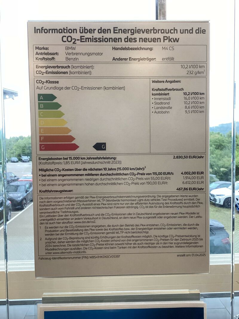 Information über den Energieverbrauch und die CO2-Emissionen des neuen PKW