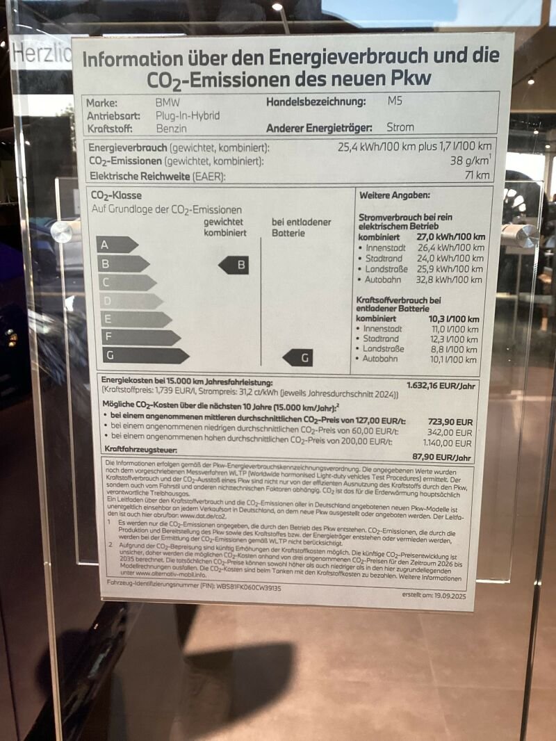 Information über den Energieverbrauch und die CO2-Emissionen des neuen PKW