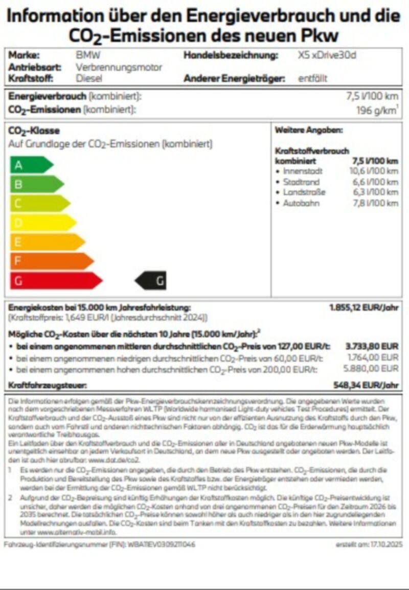 Information über den Energieverbrauch und die CO2-Emissionen des neuen PKW
