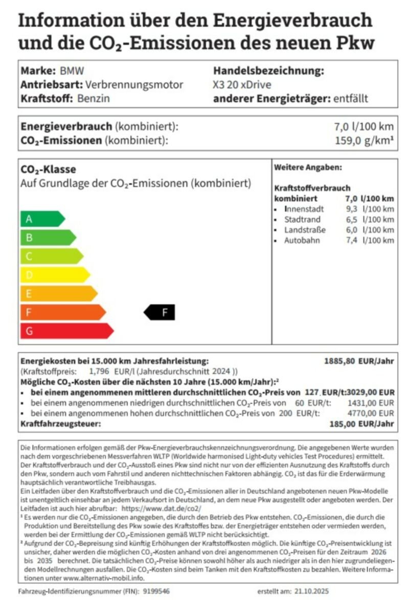 Information über den Energieverbrauch und die CO2-Emissionen des neuen PKW