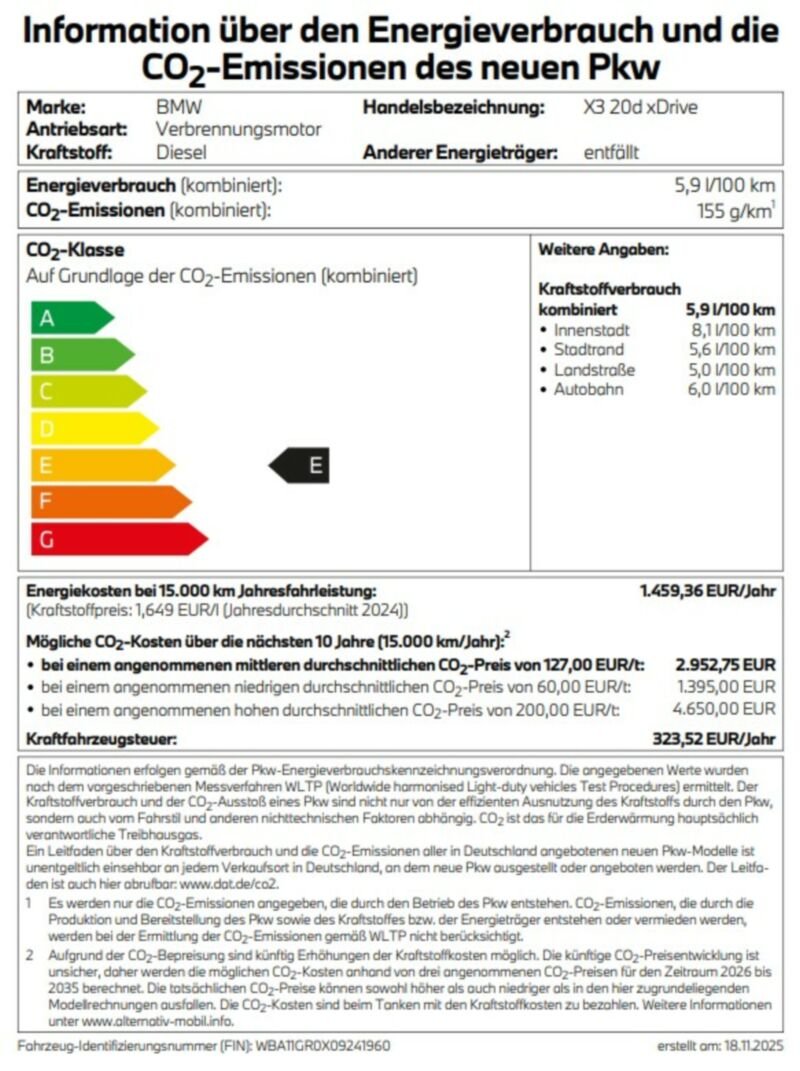 Information über den Energieverbrauch und die CO2-Emissionen des neuen PKW