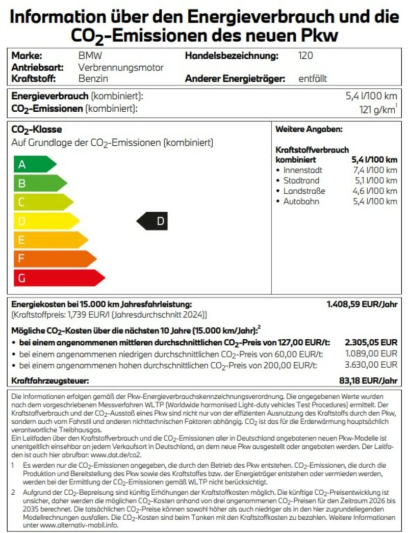 Information über den Energieverbrauch und die CO2-Emissionen des neuen PKW