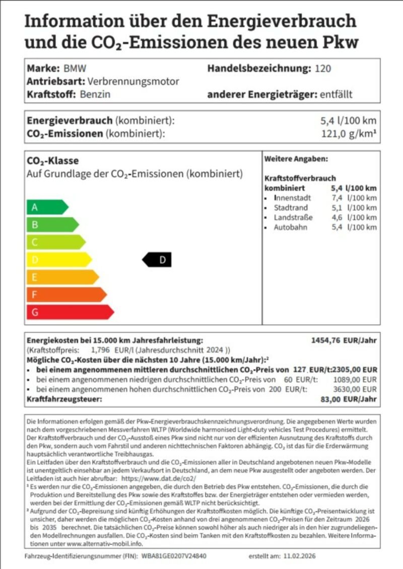 Information über den Energieverbrauch und die CO2-Emissionen des neuen PKW
